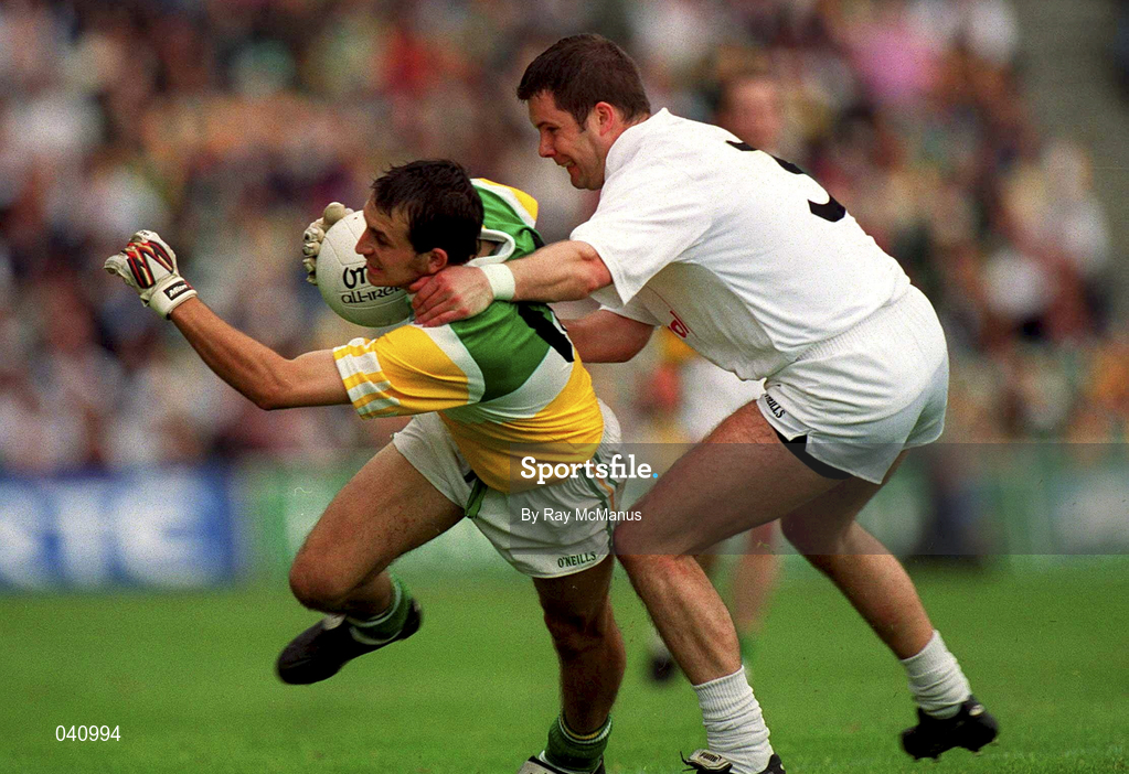 25 June 2000; Roy Malone of Offaly in action against Ronan Quinn of Kildare during the Bank of Ireland Leinster Senior Football Championship Semi-Final match between Kildare and Offaly at Croke Park in Dublin. Photo by Ray McManus/Sportsfile