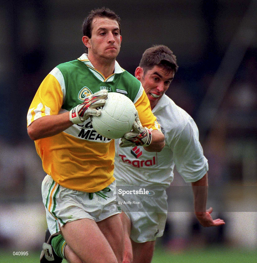25 June 2000; Roy Malone of Offaly in action against Anthony Rainbow of Kildare during the Bank of Ireland Leinster Senior Football Championship Semi-Final match between Kildare and Offaly at Croke Park in Dublin. Photo by Aoife Rice/Sportsfile