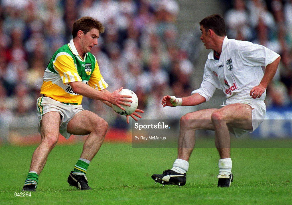 25 June 2000; Colm Quinn of Offaly in action against Anthony Rainbow of Kildare during the Bank of Ireland Leinster Senior Football Championship Semi-Final match between Kildare and Offaly at Croke Park in Dublin. Photo by Ray McManus/Sportsfile