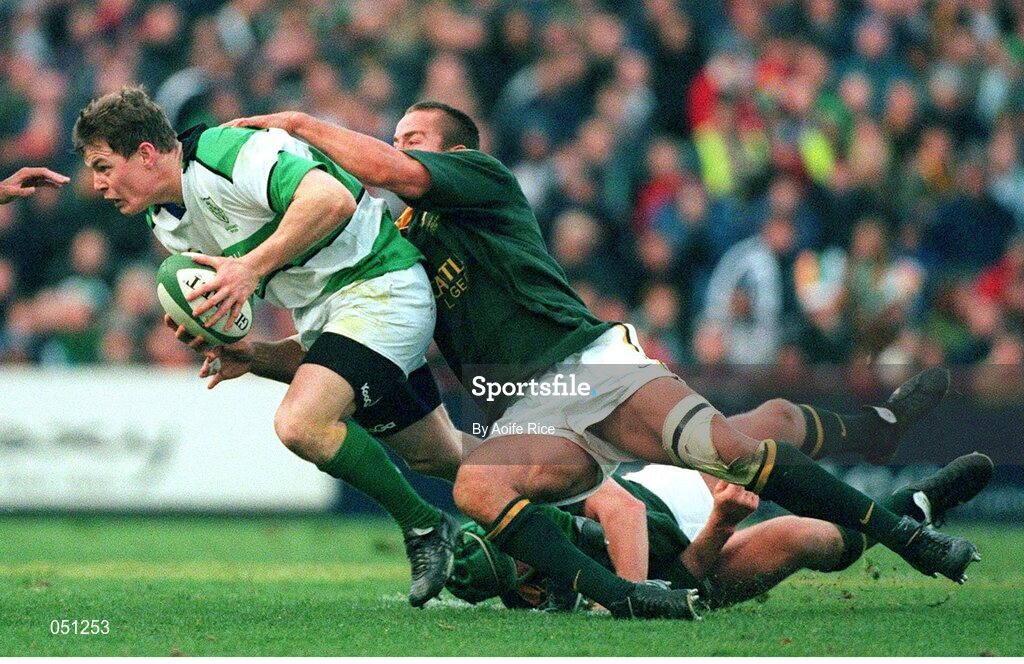 19 November 2000; Brian O'Driscoll, Ireland, is tackled by Corne Krige, South Africa. International friendly, Ireland v South Africa, Lansdowne Road, Dublin. Picture credit: Aoife Rice / SPORTSFILE