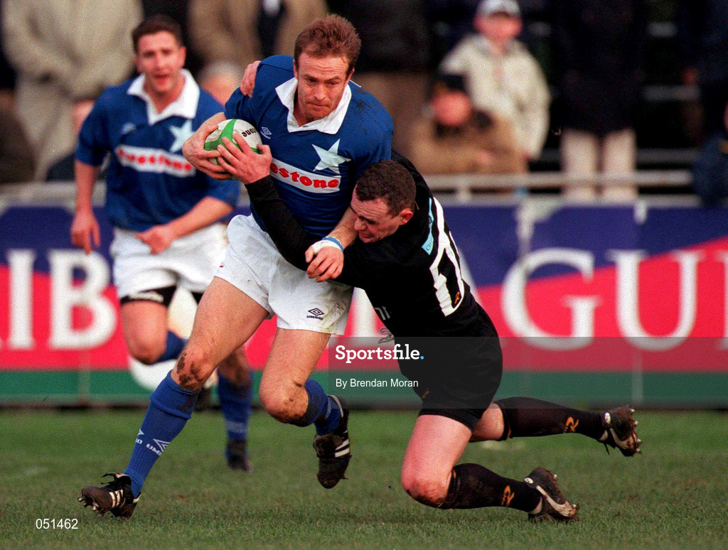 2 December 2000; Denis Hickie of St Mary's is tackled by Mike Lynch of Young Munster during the AIB League Division 1 match betweem St Mary's College and Young Munster at Templeville Road in Dublin. Photo by Brendan Moran/Sportsfile