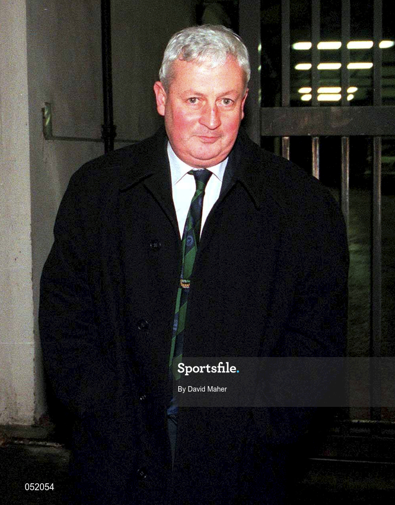 27 November 2000; FAI Honorary Treasurer Brendan Menton leaves by the rear entrance following the FAI National Council Meeting at FAI Headquarters in Merrion Square, Dublin. Photo by David Maher/Sportsfile