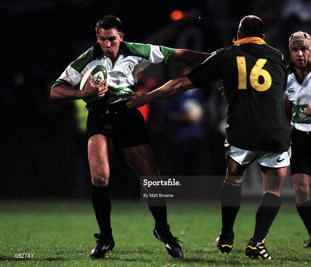 15 November 2000; Justin Bishop of Ireland A in action against Charl Marais of South Africa A during the "A" Rugby International Friendly match between Ireland A and South Africa A at Thomond Park in Limerick. Photo by Matt Browne/Sportsfile