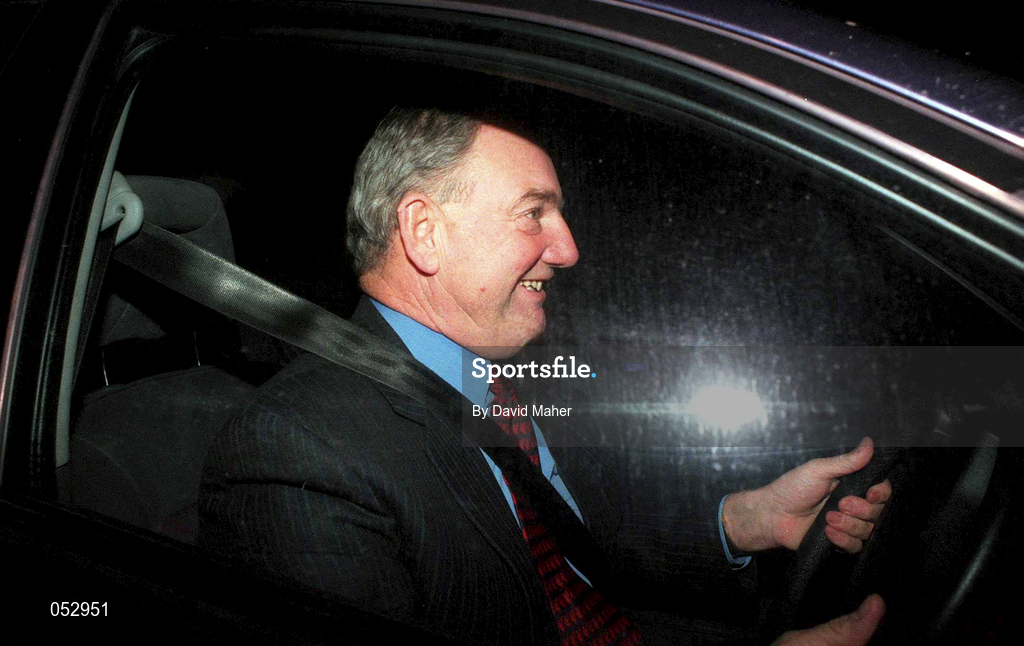 27 November 2000; Chairman of the Eircom National League Michael Hyland leaves at the rear entrance following a FAI National Council Meeting at FAI Headquarters in Merrion Square, Dublin. Photo by David Maher/Sportsfile