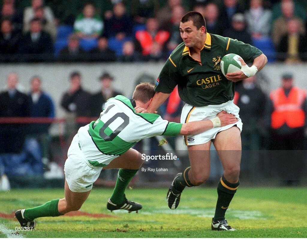 19 November 2000; Thinus Delport, South Africa, in action against Ronan O'Gara, Ireland. International friendly, Ireland v South Africa, Lansdowne Road, Dublin. Picture credit: Ray Lohan / SPORTSFILE