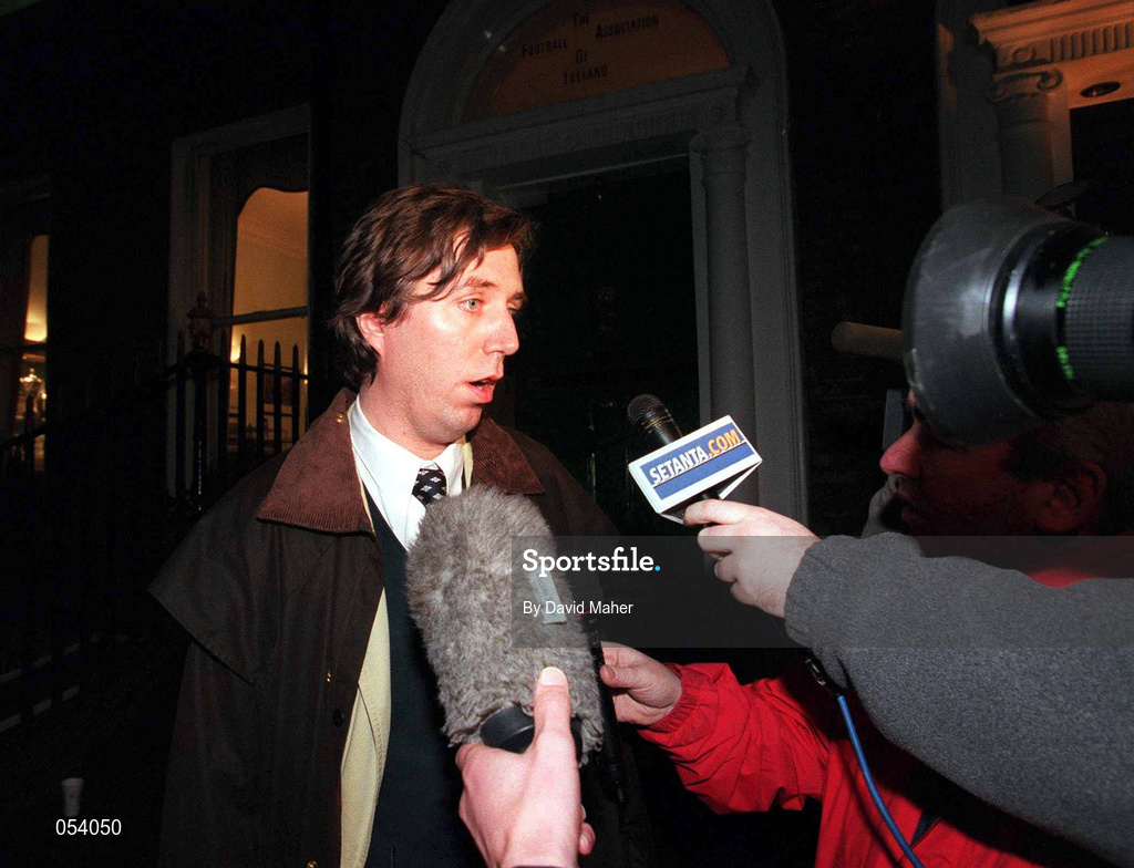 27 November 2000; John Delaney, Waterford United and FAI National Council Member is pictured speaking to media following an FAI National Council Meeting at FAI Headquarters on Merrion Square in Dublin. Photo by David Maher/Sportsfile
