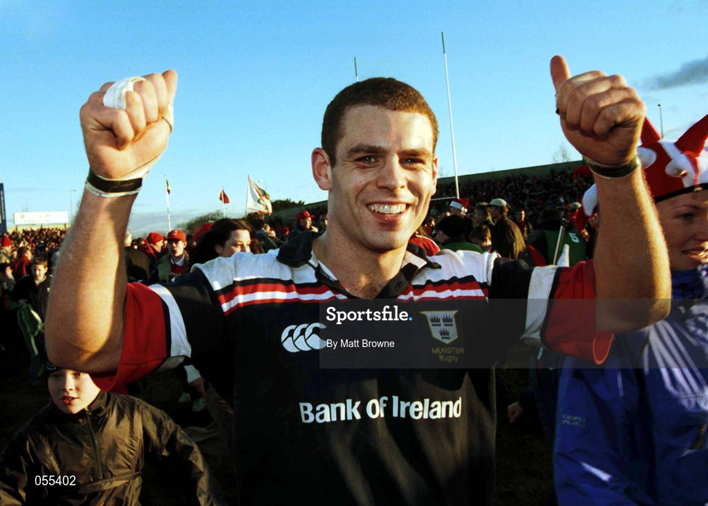 28 January 2001; Dominic Crotty celebrates the win over Biarritz following the Heineken Cup Quarter-Final match between Munster and Biarritz at Thomond Park in Limerick. Photo by Matt Browne/Sportsfile
