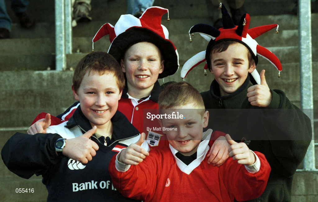 28 January 2001; Munster supporters, from left, Stephen Dilworth, Senin Og O'Sullivan, Paul O'Sullivan and Ian Purcell during the Heineken Cup Quarter-Final match between Munster and Biarritz at Thomond Park in Limerick. Photo by Matt Browne/Sportsfile