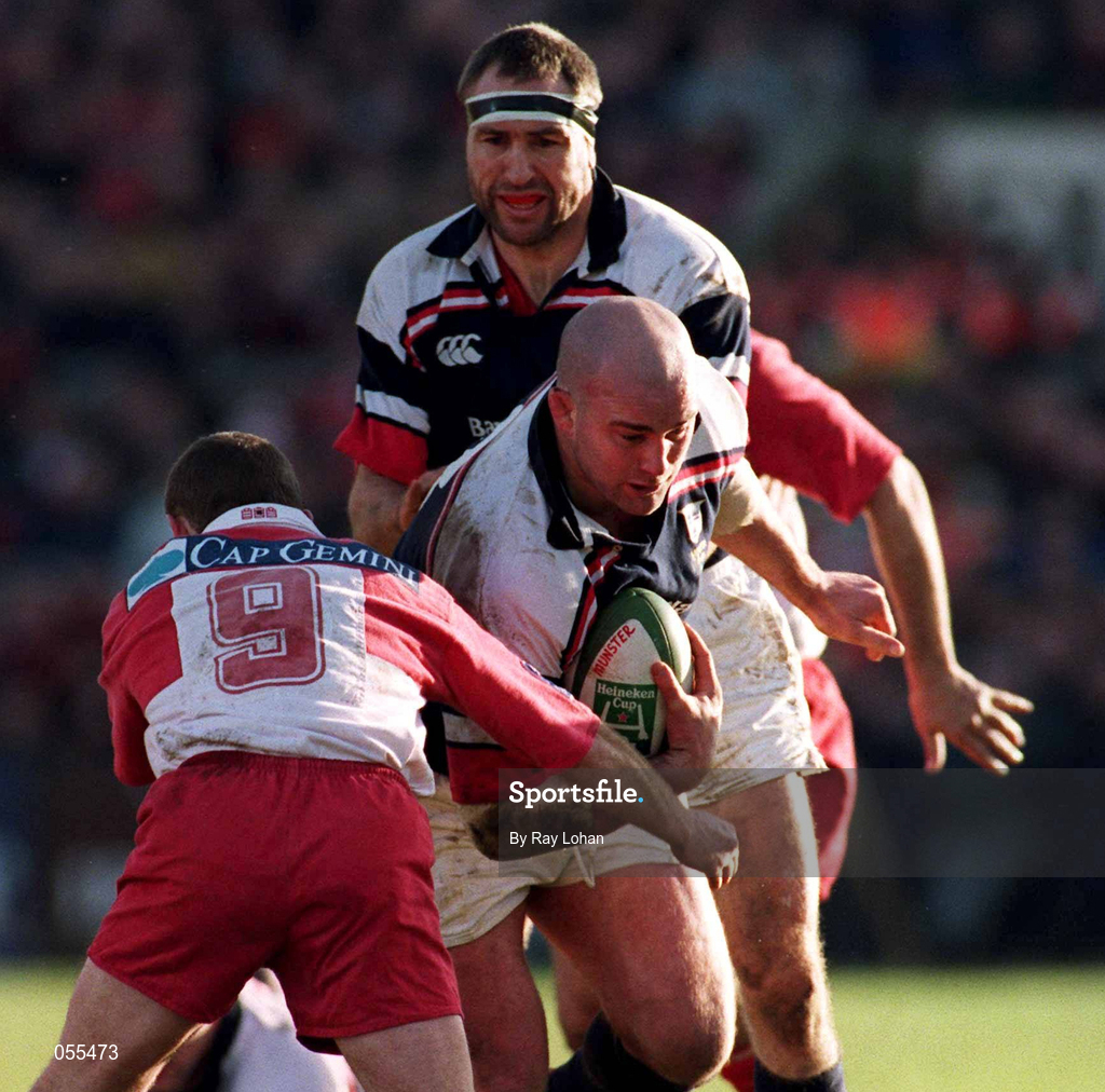 28 January 2001; John Hayes of Munster in action against Sebastien Bonnet of Biarritz during the Heineken Cup Quarter-Final match between Munster and Biarritz at Thomond Park in Limerick. Photo by Ray Lohan/Sportsfile