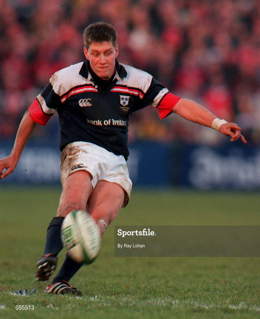 28 January 2001; Ronan O'Gara of Munster during the Heineken Cup Quarter-Final match between Munster and Biarritz at Thomond Park in Limerick. Photo by Ray Lohan/Sportsfile