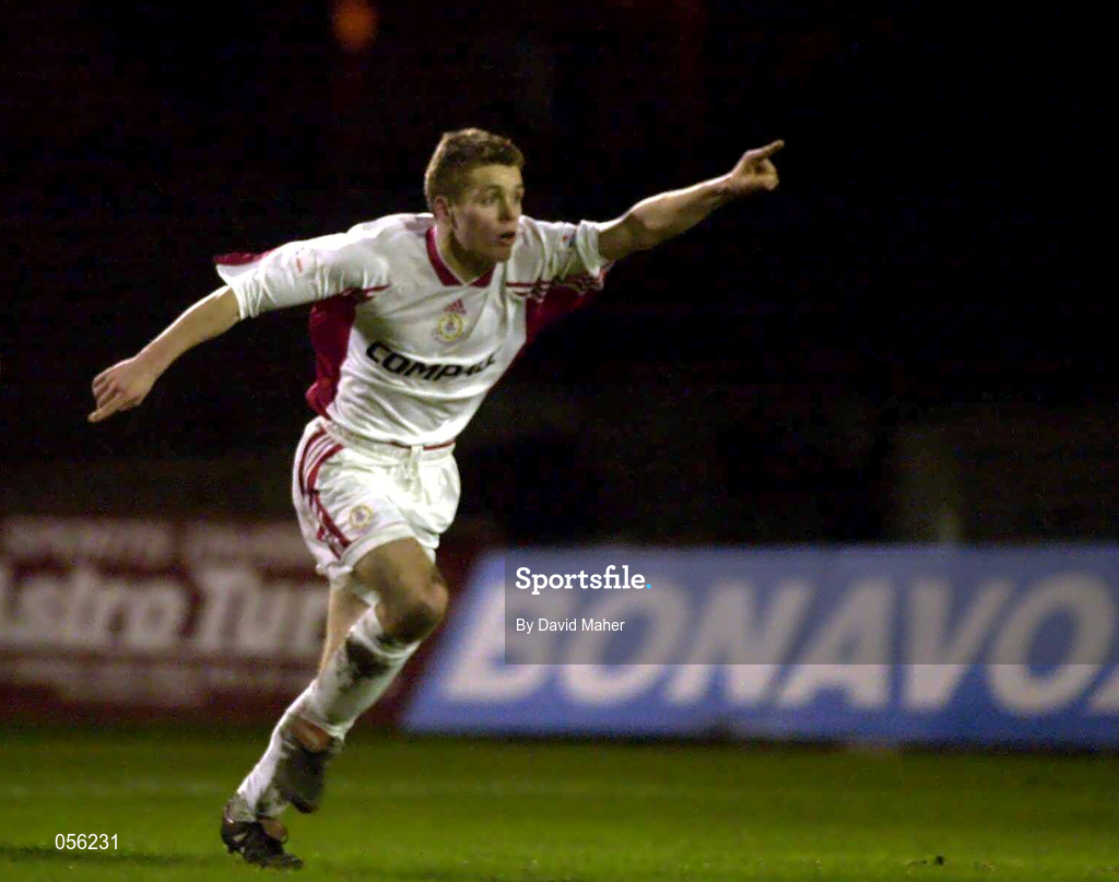 9 February 2001; Alan Murphy of Galway United celebrates after scoring his side's second goal during the Eircom League Premier Division match between Bohemians and Galway United at Dalymount Park in Dublin. Photo by David Maher/Sportsfile