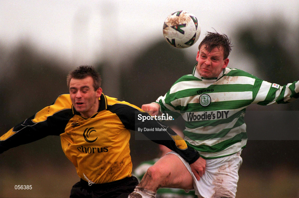 11 February 2001; Gareth Cronin of Shamrock Rovers in action against Warren Parkes of Kilkenny City during the Eircom League Premier Division match between Kilkenny City and Shamrock Rovers at Scanlan Park in Kilkenny. Photo by David Maher/Sportsfile