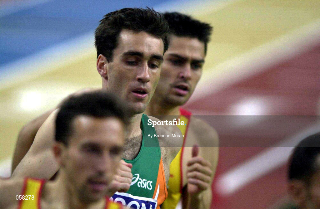 11 March 2001; Mark Carroll of Ireland in action during the Men's 3000 metres Final during the World Indoor Athletics Championship at the Atlantic Pavillion in Lisbon, Portugal. Photo by Brendan Moran/Sportsfile