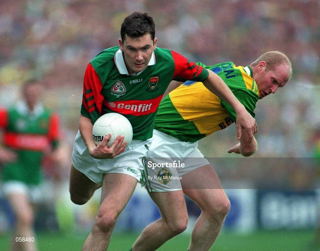 28 September 1997; James Horan, Mayo, is tackled by Liam O'Flaherty, Kerry. Kerry v Mayo, All Ireland Final, Croke Park, Dublin, Football. Picture credit; Ray McManus / SPORTSFILE