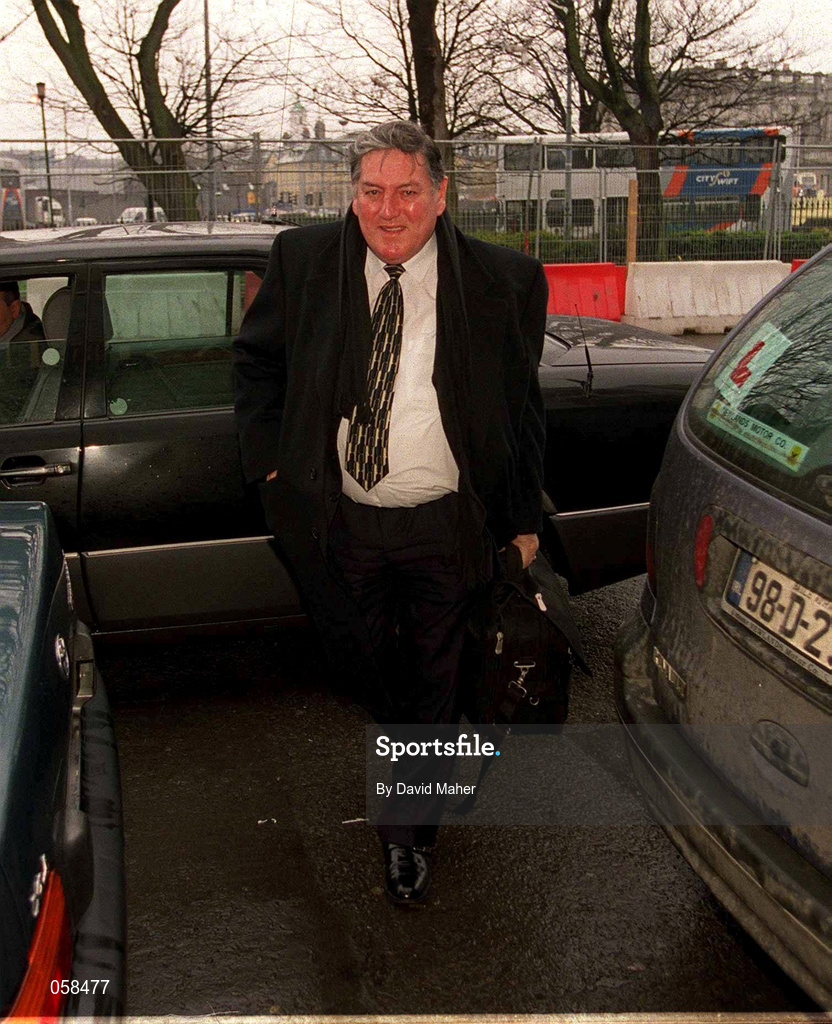 16 March 2001; Des Casey, Honorary Secretary of the FAI, arrives for the FAI Board of Management meeting at the Ashling Hotel in Dublin. Photo by David Maher/Sportsfile
