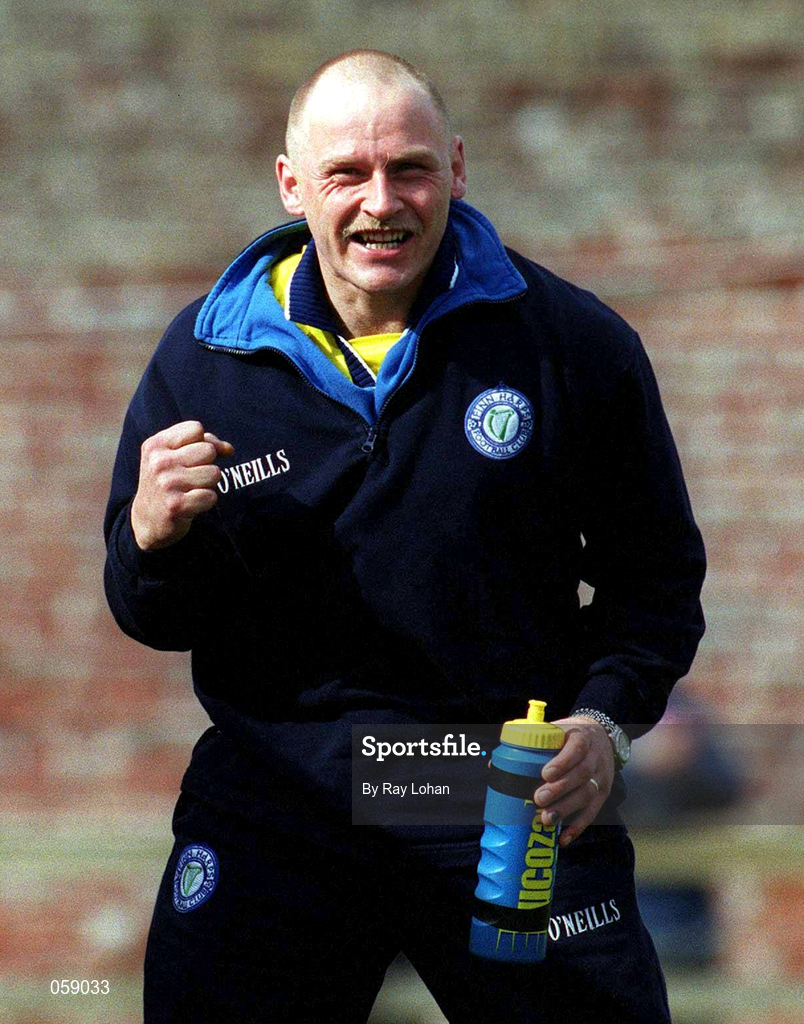 1 April 2001; Finn Harps manager Jonathan Speak celebrates his side's goal during the Eircom League Premier Division match between UCD and Finn Harps at Belfield in UCD, Dublin. Photo by Ray Lohan/Sportsfile