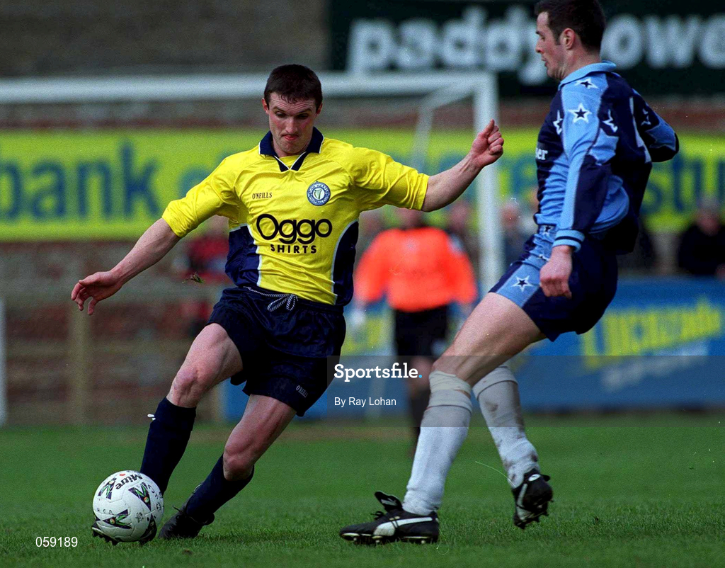1 April 2001; Johnny Kenny of Finn Harps in action against Ciaran Martyn of UCD during the Eircom League Premier Division match between UCD and Finn Harps at Belfield in UCD, Dublin. Photo by Ray Lohan/Sportsfile