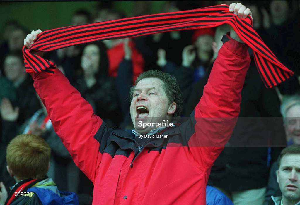 15 April 2001; A Longford Town supporter during the FAI Harp Lager Cup Quarter-Final match between Portmarnock and Longford Town at Tolka Park in Dublin. Photo by David Maher/Sportsfile