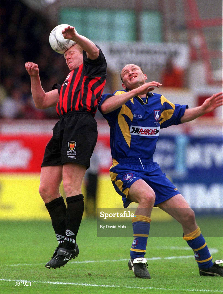 13 May 2001; Dave Hill of Bohemians in action against Colin Natoro of Longford Town during the Harp Lager FAI Cup Final match between Bohemians and Longford Town at Tolka Park in Dublin. Photo by David Maher/Sportsfile