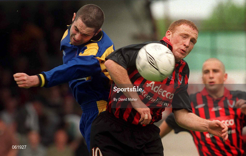 13 May 2001; Glen Crowe of Bohemians in action against Paul McNally of Longford Town during the Harp Lager FAI Cup Final match between Bohemians and Longford Town at Tolka Park in Dublin. Photo by David Maher/Sportsfile