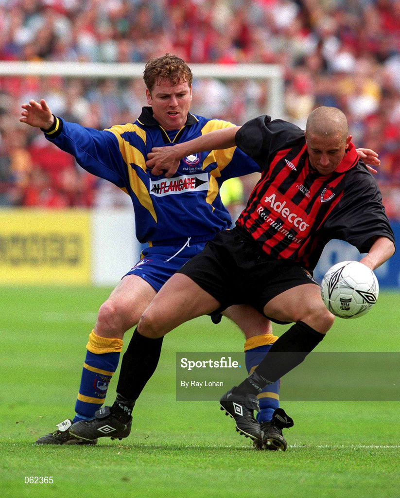 13 May 2001; Alex Nesovic of Bohemians in action against Eric Smith of Longford Town during the Harp Lager FAI Cup Final match between Bohemians and Longford Town at Tolka Park in Dublin. Photo by Ray Lohan/Sportsfile