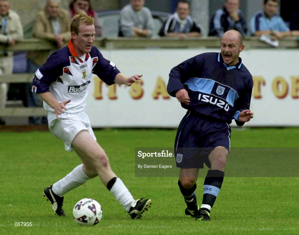 21 July 2001; Lee Carsley of Coventry City in action against Michael O'Donnell of UCD during the pre-season friendly match between UCD and Coventry City at Belfield Park in UCD, Dublin. Photo by Damien Eagers/Sportsfile