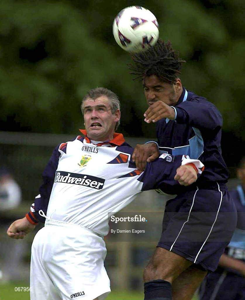 21 July 2001; Derek Swan of UCD in action against Richard Shaw of Coventry City during the pre-season friendly match between UCD and Coventry City at Belfield Park in UCD, Dublin. Photo by Damien Eagers/Sportsfile