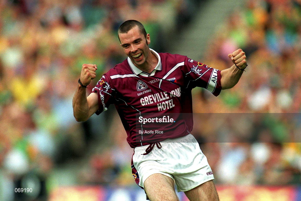 5 August 2001; Paul Conway of Westmeath celebrates after scoring his side's first goal during the Bank of Ireland All-Ireland Senior Football Championship Quarter-Final match between Meath and Westmeath at Croke Park in Dublin. Photo by Aoife Rice/Sportsfile