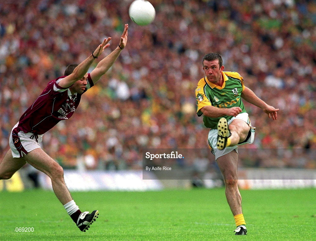 5 August 2001; Evan Kelly of Meath in action against Paul Conway of Westmeath during the Bank of Ireland All-Ireland Senior Football Championship Quarter-Final match between Meath and Westmeath at Croke Park in Dublin. Photo by Aoife Rice/Sportsfile