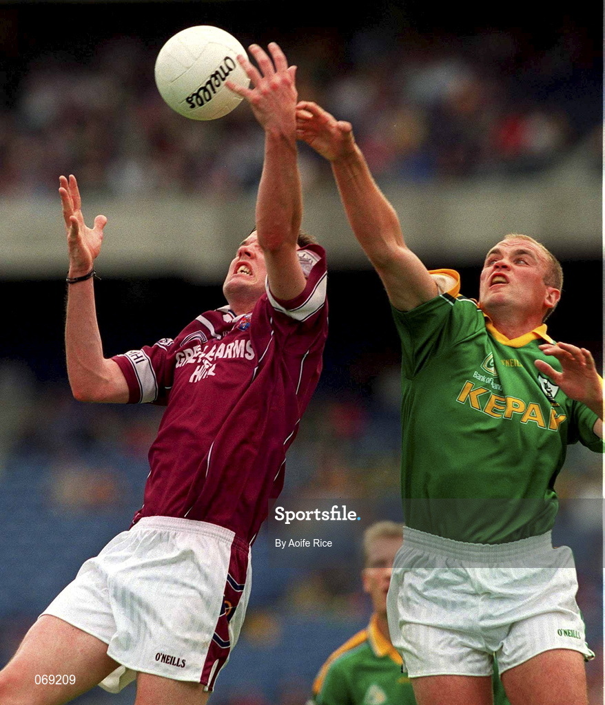 5 August 2001; David O'Shaughnessy of Westmeath in action against John McDermott of Meath during the Bank of Ireland All-Ireland Senior Football Championship Quarter-Final match between Meath and Westmeath at Croke Park in Dublin. Photo by Aoife Rice/Sportsfile