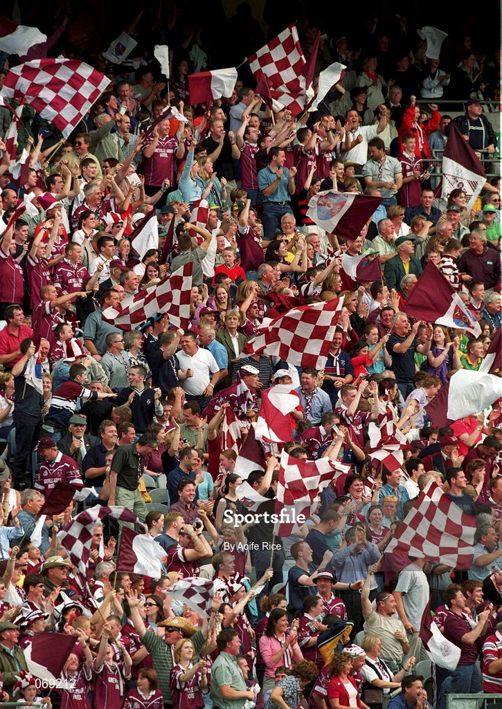 5 August 2001; Westmeath supporters celebrate during the Bank of Ireland All-Ireland Senior Football Championship Quarter-Final match between Meath and Westmeath at Croke Park in Dublin. Photo by Aoife Rice/Sportsfile