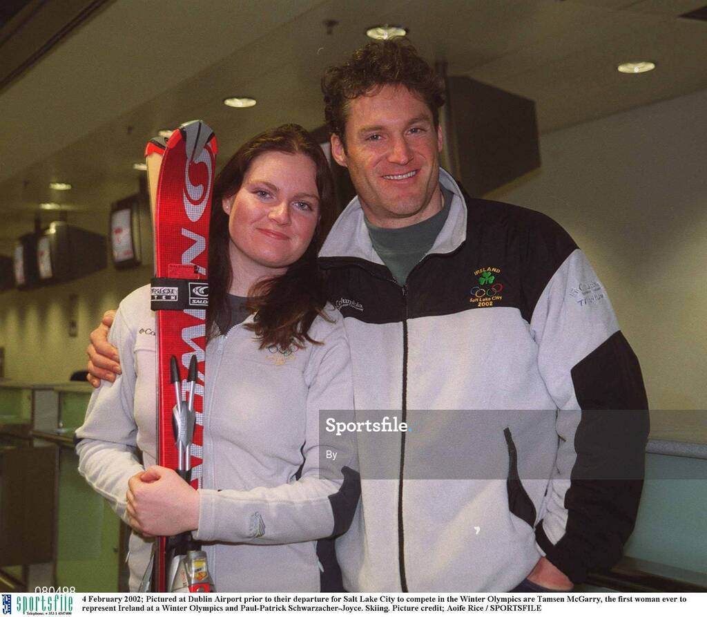 4 February 2002; Pictured at Dublin Airport prior to their departure for Salt Lake City to compete in the Winter Olympics are Tamsen McGarry, the first woman ever to represent Ireland at a Winter Olympics and Paul-Patrick Schwarzacher-Joyce. Skiing. Picture credit; Aoife Rice / SPORTSFILE
