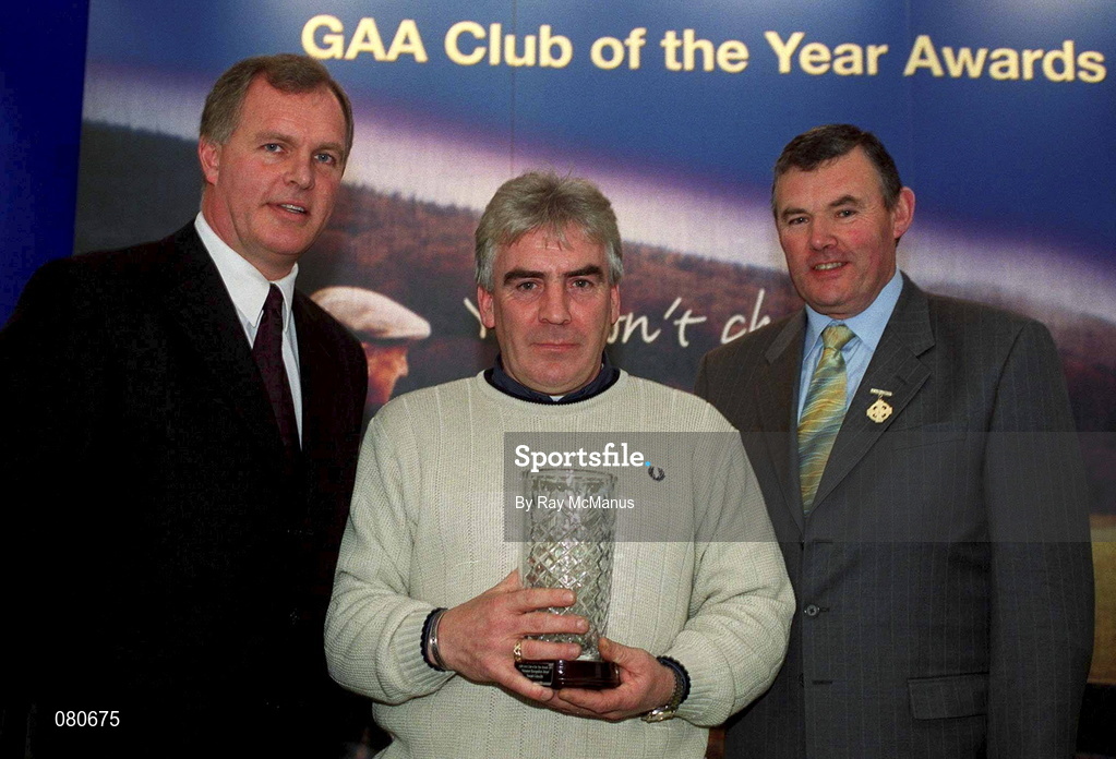 4 February 2002; Pictured at the AIB GAA Club of the Year Awards 2001 in Croke Park are Eugene Sheehy, Managing Director of AIB, Sean McCague, President of the GAA, Arthur McCallan of Naomh Colmcille who won the Volunteer Recognition Award at Croke Park in Dublin. Photo by Ray McManus/Sportsfile