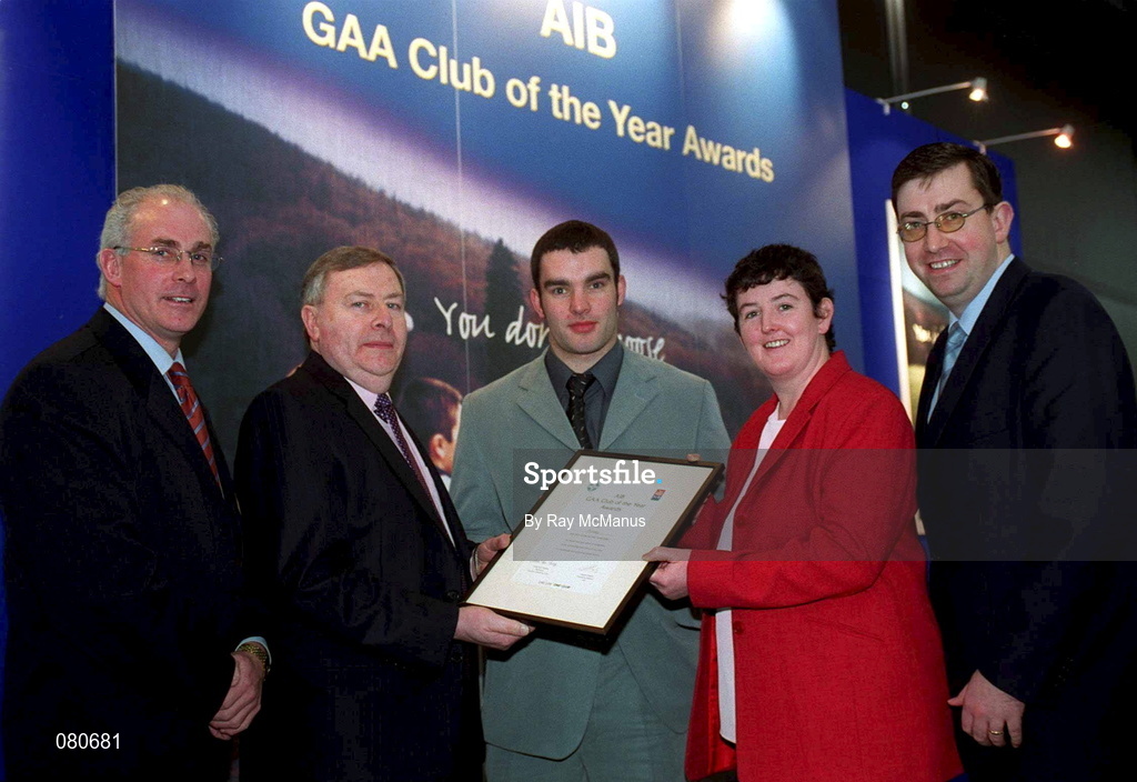 4 February 2002; Pictured at the AIB GAA Club of the Year Awards 2001 in Croke Park are Sean Walsh, Kerry County Board, Pat Healy of Kerins O'Rahilly, Barry O'Shea of AIB, Martina Griffen of Kerins O'Rahilly and Pat McTigue of AIB as Kerins O'Rahilly were presented with the Kerry Club of the Year Award at Croke Park in Dublin. Photo by Ray McManus/Sportsfile