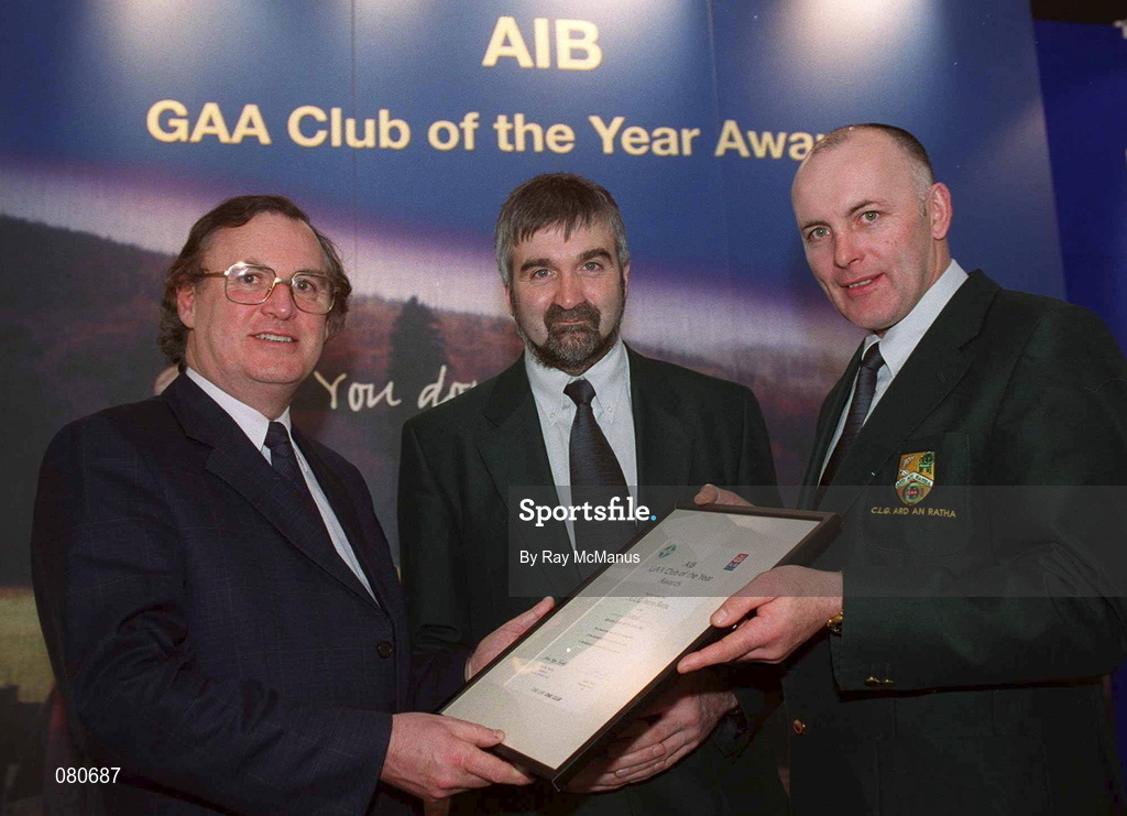 4 February 2002; Pictured at the AIB GAA Club of the Year Awards 2001 in Croke Park are Art Kavanagh, AIB, Stephen Mac Caheall and Antohny Molloy of Ard an Ratha CLG- who were presented with the Donegal Club of the Year Award at Croke Park in Dublin. Photo by Ray McManus/Sportsfile