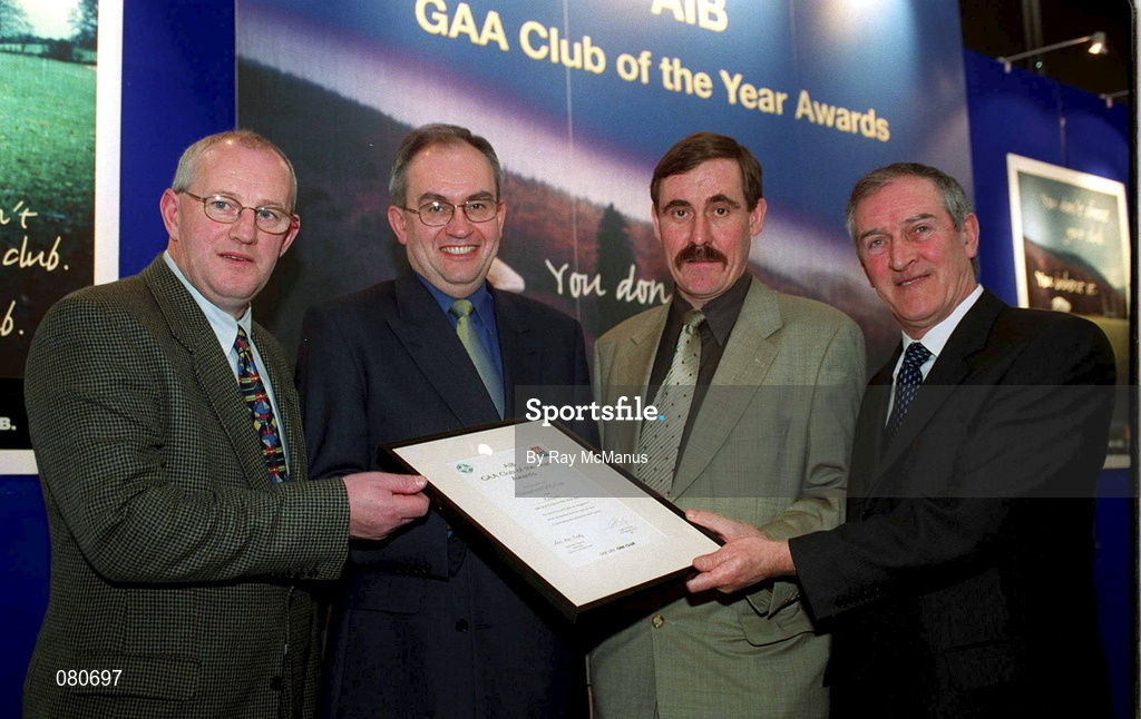 4 February 2002; Pictured at the AIB GAA Club of the Year Awards 2001 in Croke Park are Andrew O'Sullivan of Moorefield, John Casserly of AIB, Paddy Folan of Moorefield and Timmy Durney of Moorefield, Moorefield were presented with the Kildare Club of the Year Award at Croke Park in Dublin. Photo by Ray McManus/Sportsfile