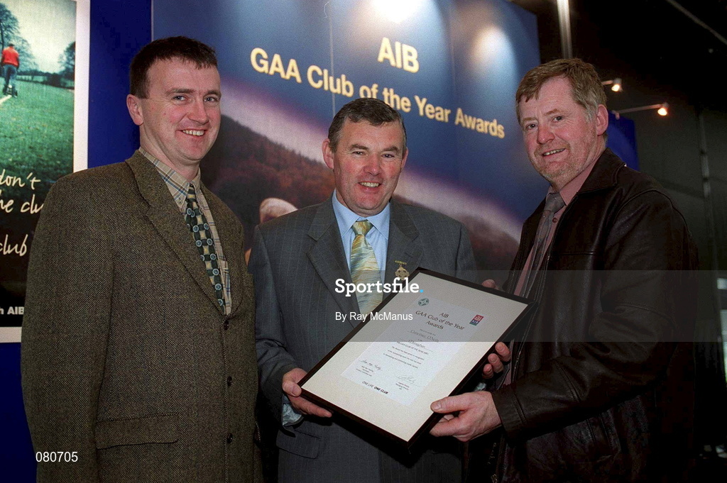 4 February 2002; Pictured at the AIB GAA Club of the Year Awards 2001 in Croke Park are Ciaran Lavelle (Clontibret O'Neill's), Sean McCague (President of the GAA) and Frank McManus (Clontibret O'Neill's). Contibret O'Neills were presented with the Monaghan Club of the Year Award at Croke Park in Dublin. Photo by Ray McManus/Sportsfile