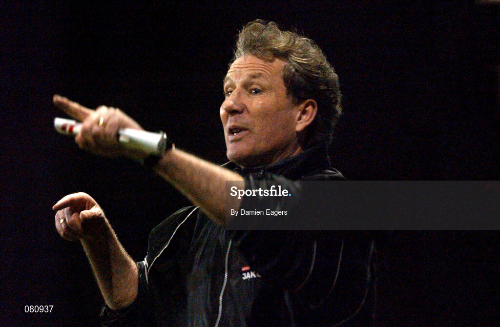 8 February 2002; Sligo Rovers manager Don O'Riordan issues instructions from the touchline during the FAI Carlsberg Cup Quarter-Final match between Shamrock Rovers and Sligo Rovers at Tolka Park in Dublin. Photo by Damien Eagers/Sportsfile