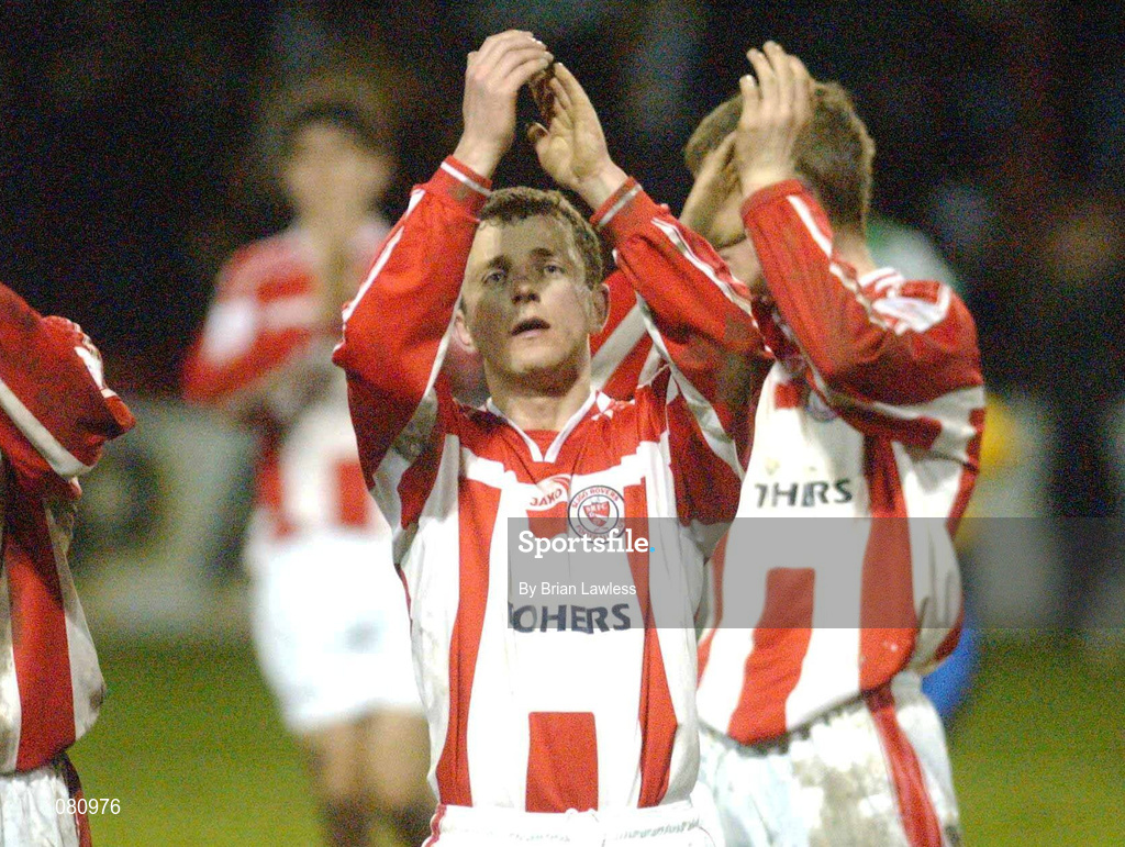 8 February 2002; Owen O'Donoghue of Sligo Rovers applauds the fans following the FAI Carlsberg Cup Quarter-Final match between Shamrock Rovers and Sligo Rovers at Tolka Park in Dublin. Photo by Brian Lawless/Sportsfile