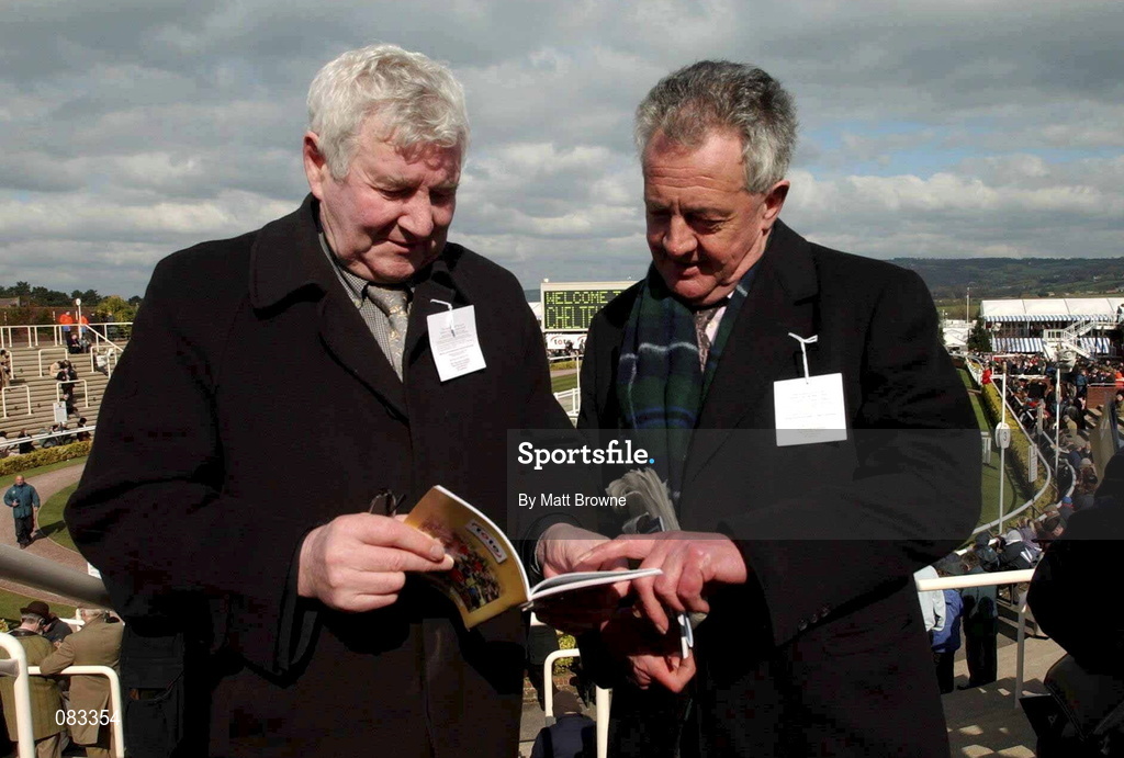 14 March 2002; Senator Rory Kiely, left, with Des O'Maley TD. during Day Three of the Cheltenham Racing Festival at Prestbury Park in Cheltenham, England. Photo by Matt Browne/Sportsfile