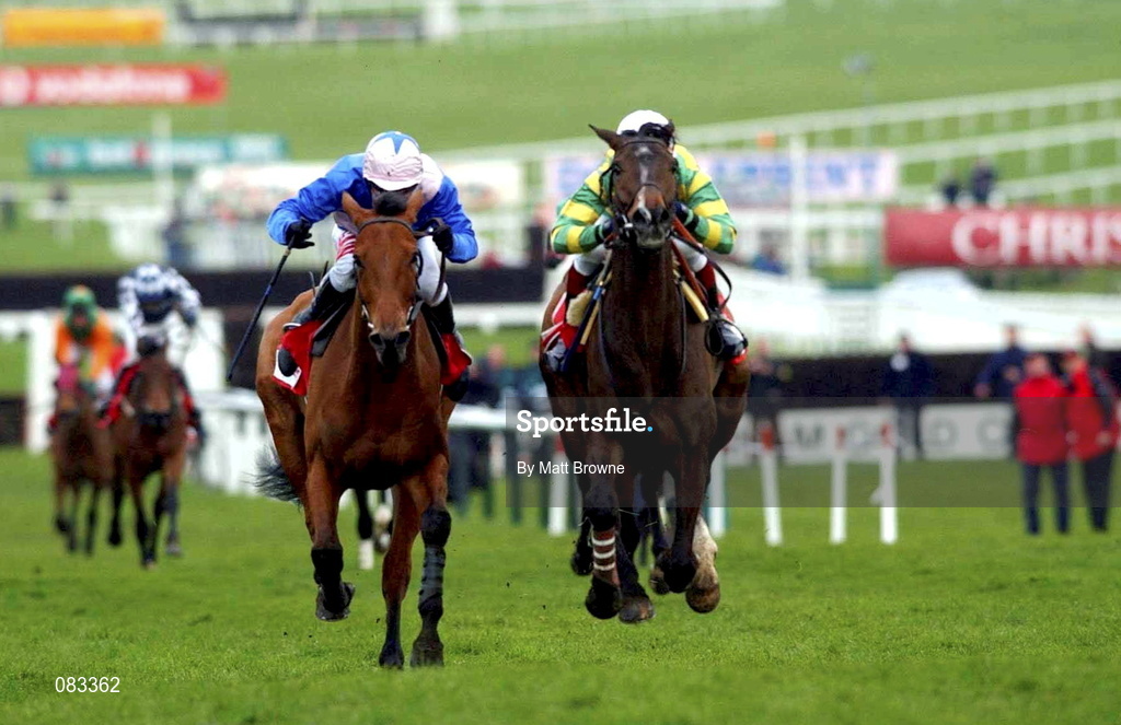 14 March 2002; Baracouda, right, with theirry Doumen up beats Bannow Bay With Charlie Swan up to go on and win The Bonusprint Stayers Hurdle Race during Day Three of the Cheltenham Racing Festival at Prestbury Park in Cheltenham, England. Photo by Matt Browne/Sportsfile