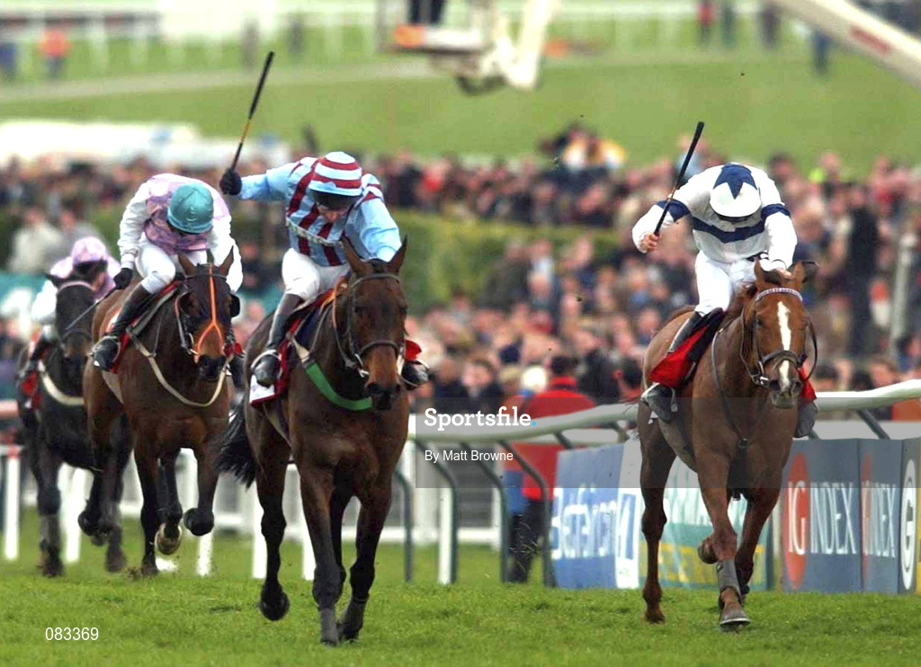 14 March 2002; Best Mate, left, with Jim Culloty up, beats Commanche Court with Ruby Walsh up, to go on and win The Tote Cheltenham Gold Cup Steeple Chase during Day Three of the Cheltenham Racing Festival at Prestbury Park in Cheltenham, England. Photo by Matt Browne/Sportsfile