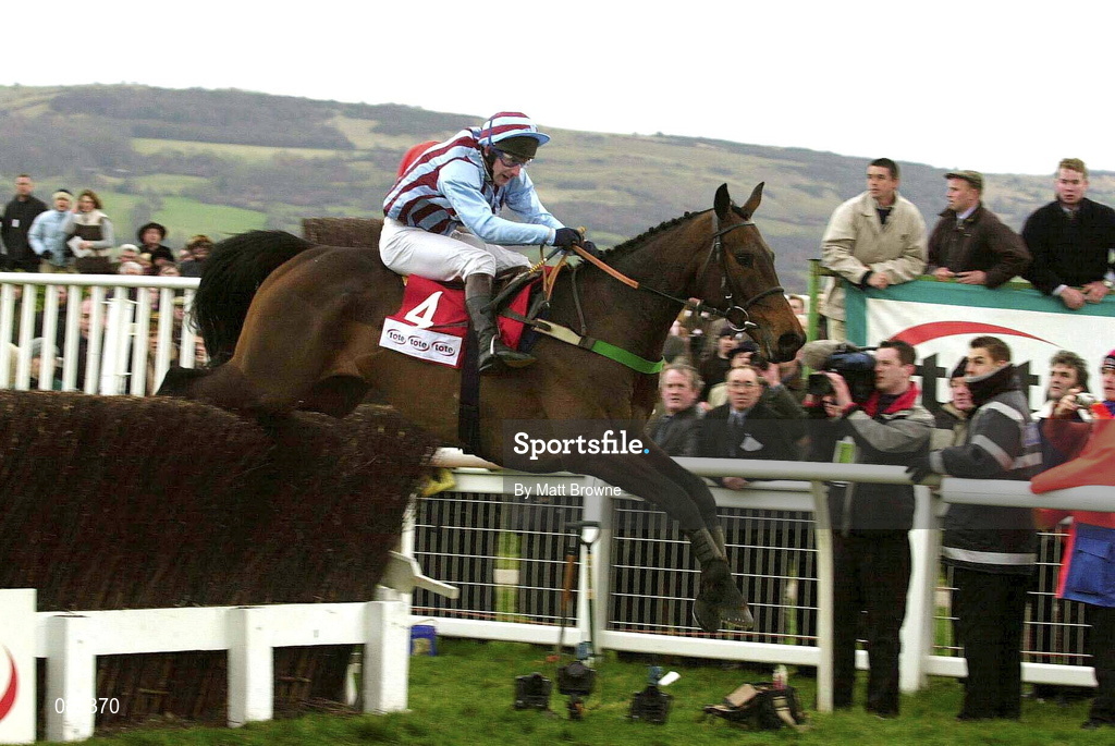 14 March 2002; Best Mate with Jim Culloty up, jumps the last to win the Tote Cheltenham Gold Cup Steeple Chase during Day Three of the Cheltenham Racing Festival at Prestbury Park in Cheltenham, England. Photo by Matt Browne/Sportsfile