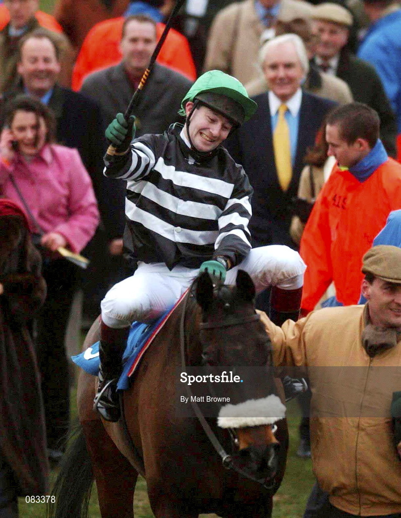 14 March 2002;David Casey celebrates winning the 130th Year Of The Cheltenham Grand Annual Steeple Chase Challenge Cup on Fadoual Du Cochet during Day Three of the Cheltenham Racing Festival at Prestbury Park in Cheltenham, England. Photo by Matt Browne/Sportsfile