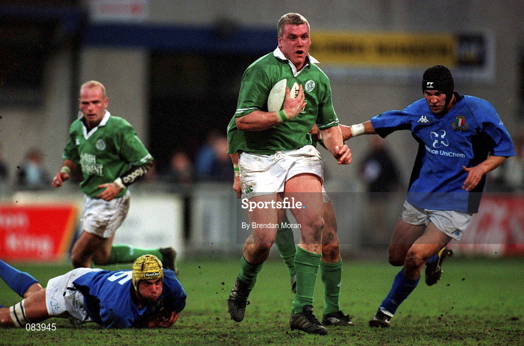 22 March 2002; Victor Costello of Ireland in action against Andrea Benatti of Italy during an International Friendly between Ireland A and Italy A at Donnybrook Stadium, Dublin. Photo by Brendan Moran/Sportsfile