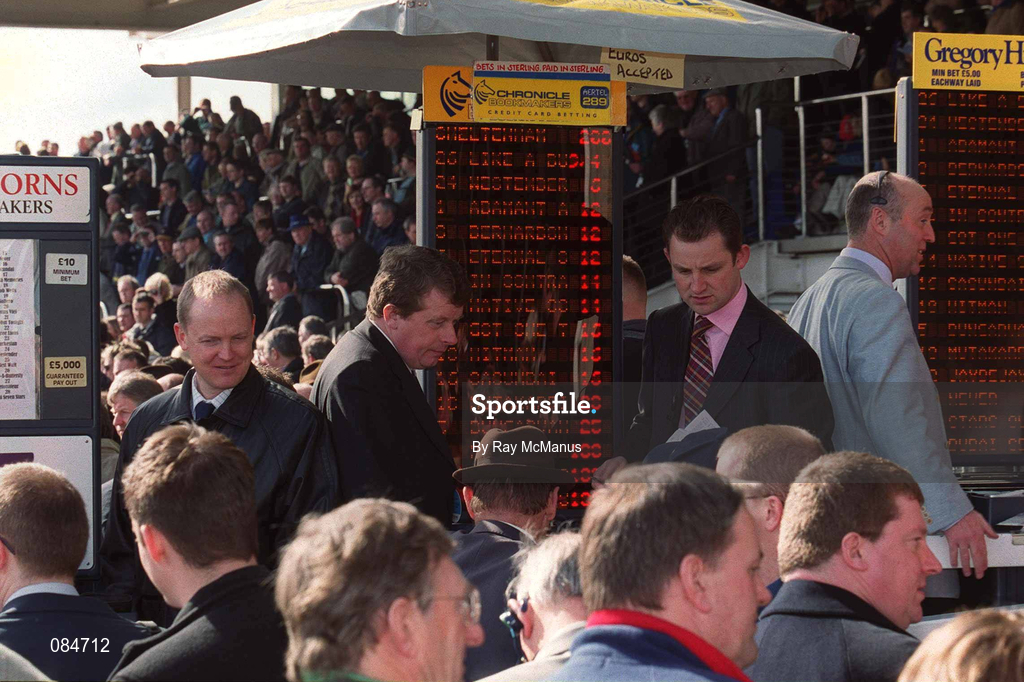 14 March 2002; Bookmakers during Day Three of the Cheltenham Racing Festival at Prestbury Park in Cheltenham, England. Photo by Ray McManus/Sportsfile