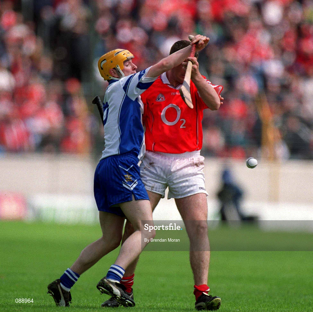 26 May 2002; Cork's Fergal McCormack in a tussle for possession with Waterford's Fergal Hartley during the Guinness Munster Senior Hurling Championship Semi-Final match between Waterford and Cork at Semple Stadium in Thurles, Tipperary. Photo by Brendan Moran/Sportsfile