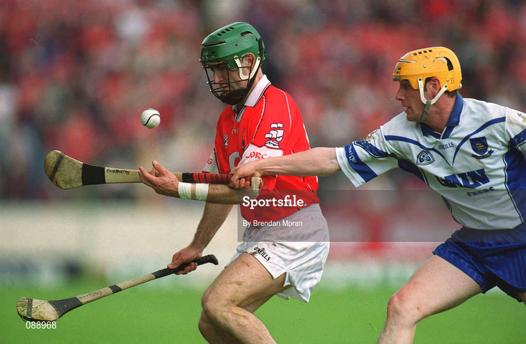 26 May 2002; Cork's Jerry O'Connor is tackled by Waterford's Eoin Murphy during the Guinness Munster Senior Hurling Championship Semi-Final match between Waterford and Cork at Semple Stadium in Thurles, Tipperary. Photo by Brendan Moran/Sportsfile