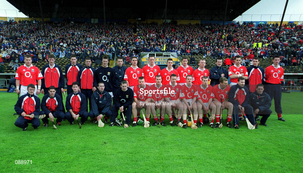 26 May 2002; The Cork panel prior to the Guinness Munster Senior Hurling Championship Semi-Final match between Waterford and Cork at Semple Stadium in Thurles, Tipperary. Photo by Brendan Moran/Sportsfile