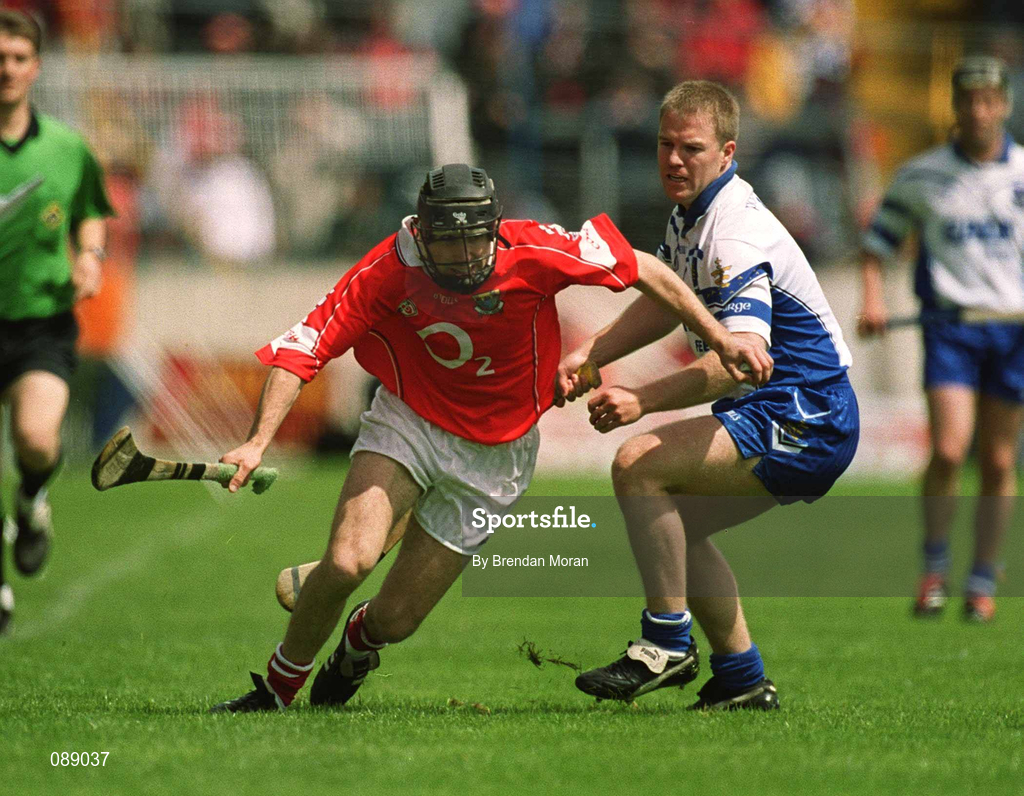 26 May 2002; Ben O'Connor of Cork in action against Brian Flannery of Waterford during the Guinness Munster Senior Hurling Championship Semi-Final match between Waterford and Cork at Semple Stadium in Thurles, Tipperary. Photo by Brendan Moran/Sportsfile